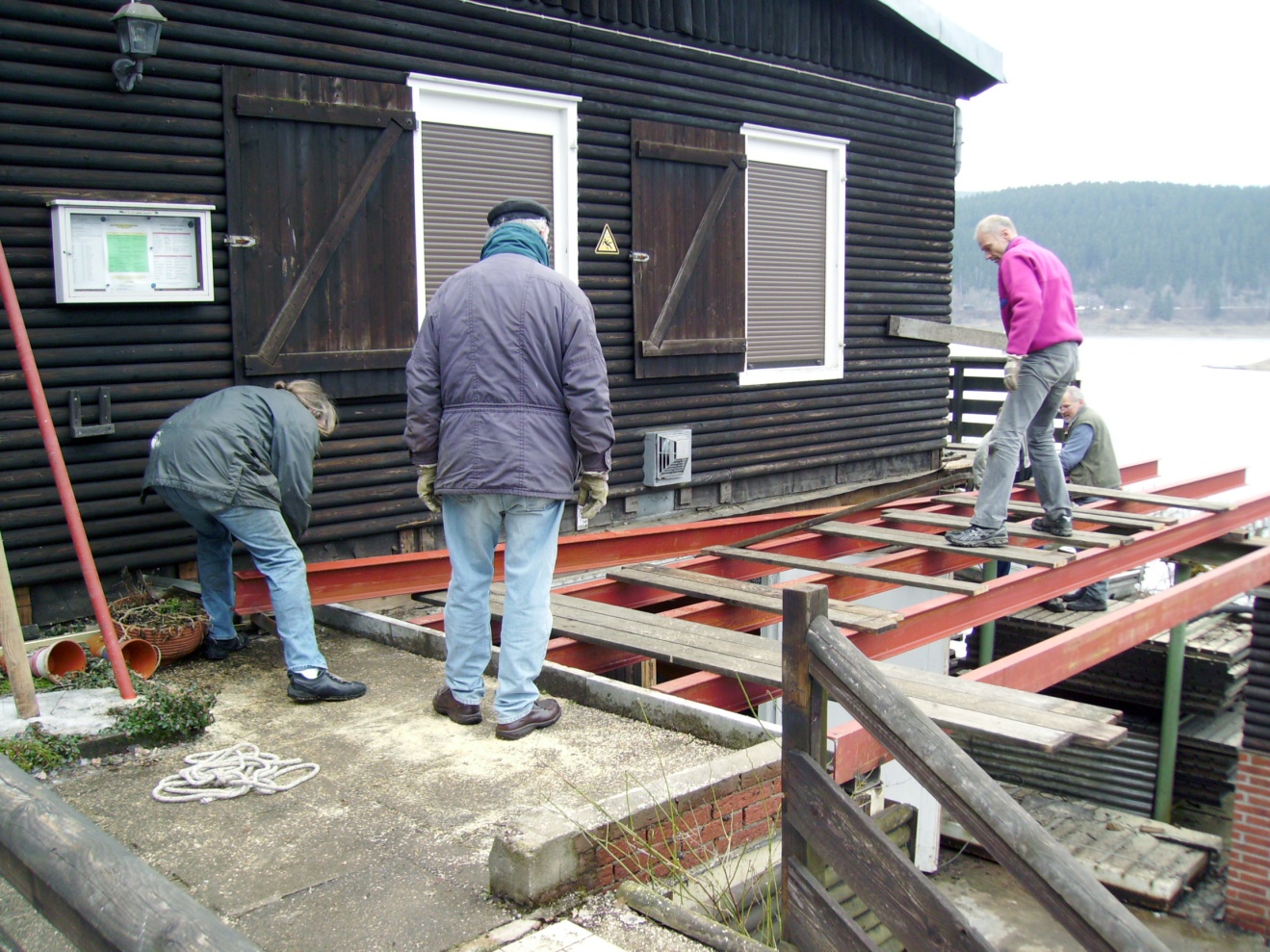 Die Mitglieder halten Clubhaus, Clubgelände, Stege und vereinseigene Boote in Arbeitseinsätzen instand.