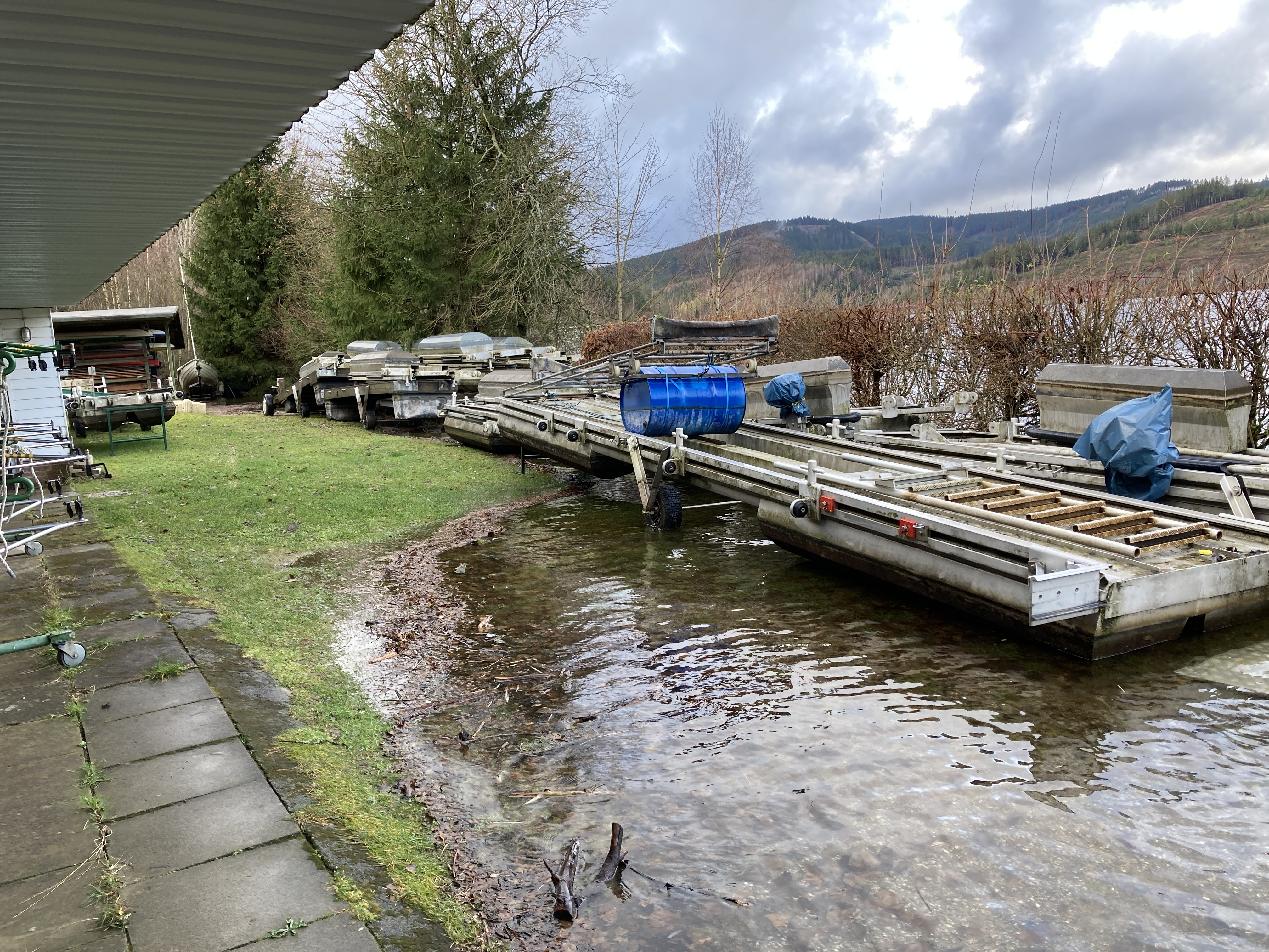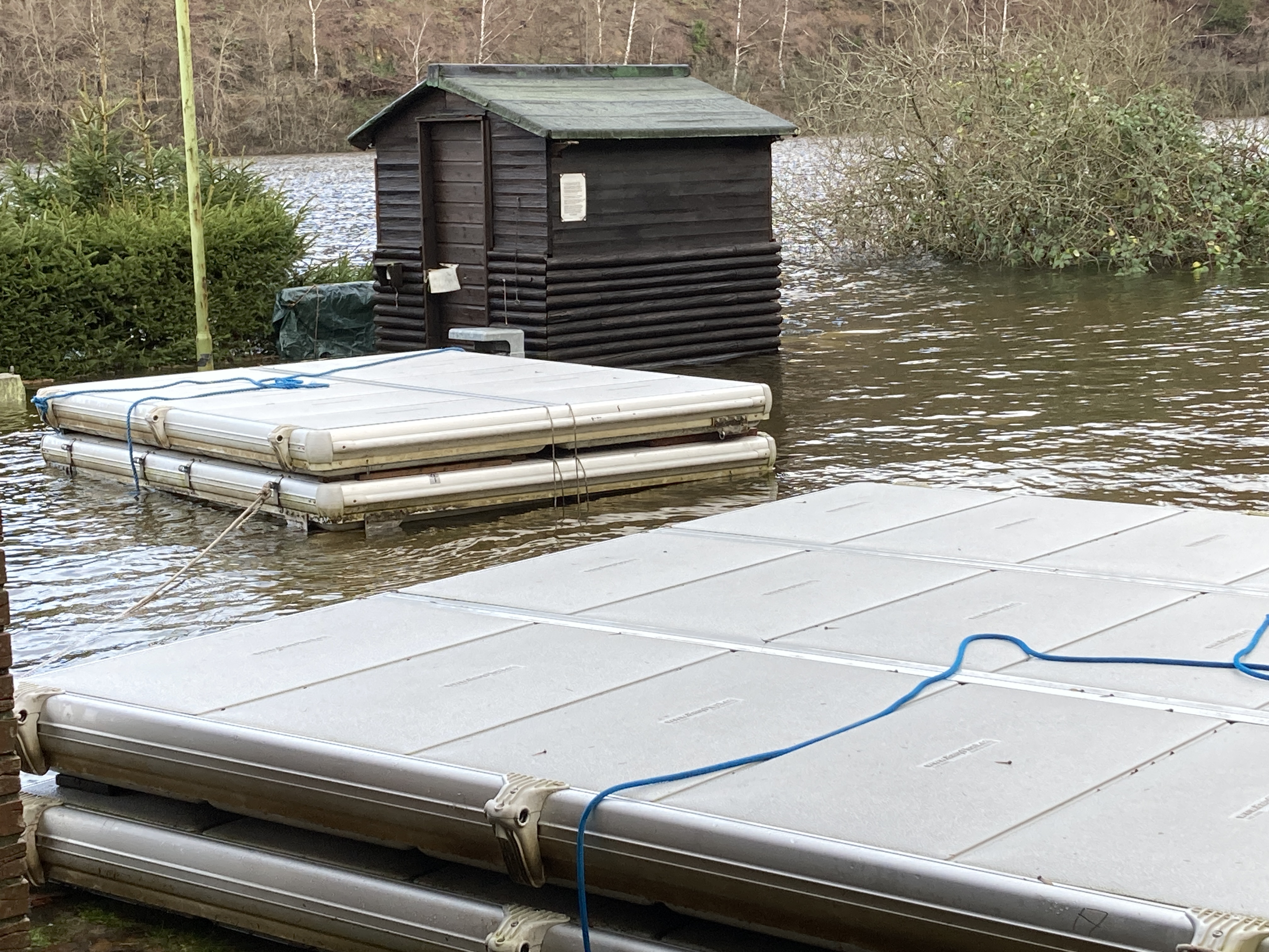 Die großen Ruderstegelemente haben sich schwimmend einen anderen Platz gesucht. |
