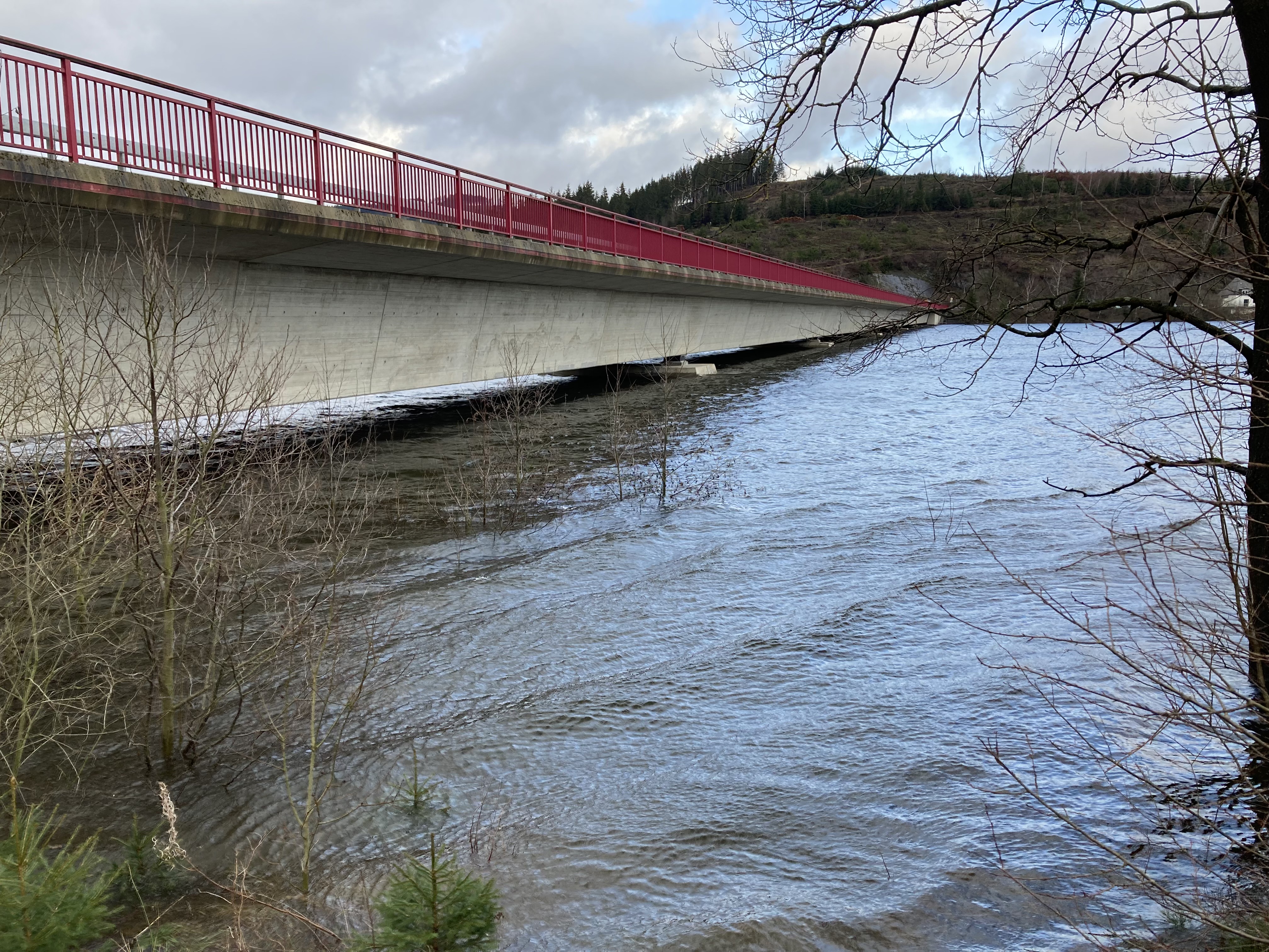 Die Weißwasserbrücke schwebt im Wasser ohne Pfeiler. |