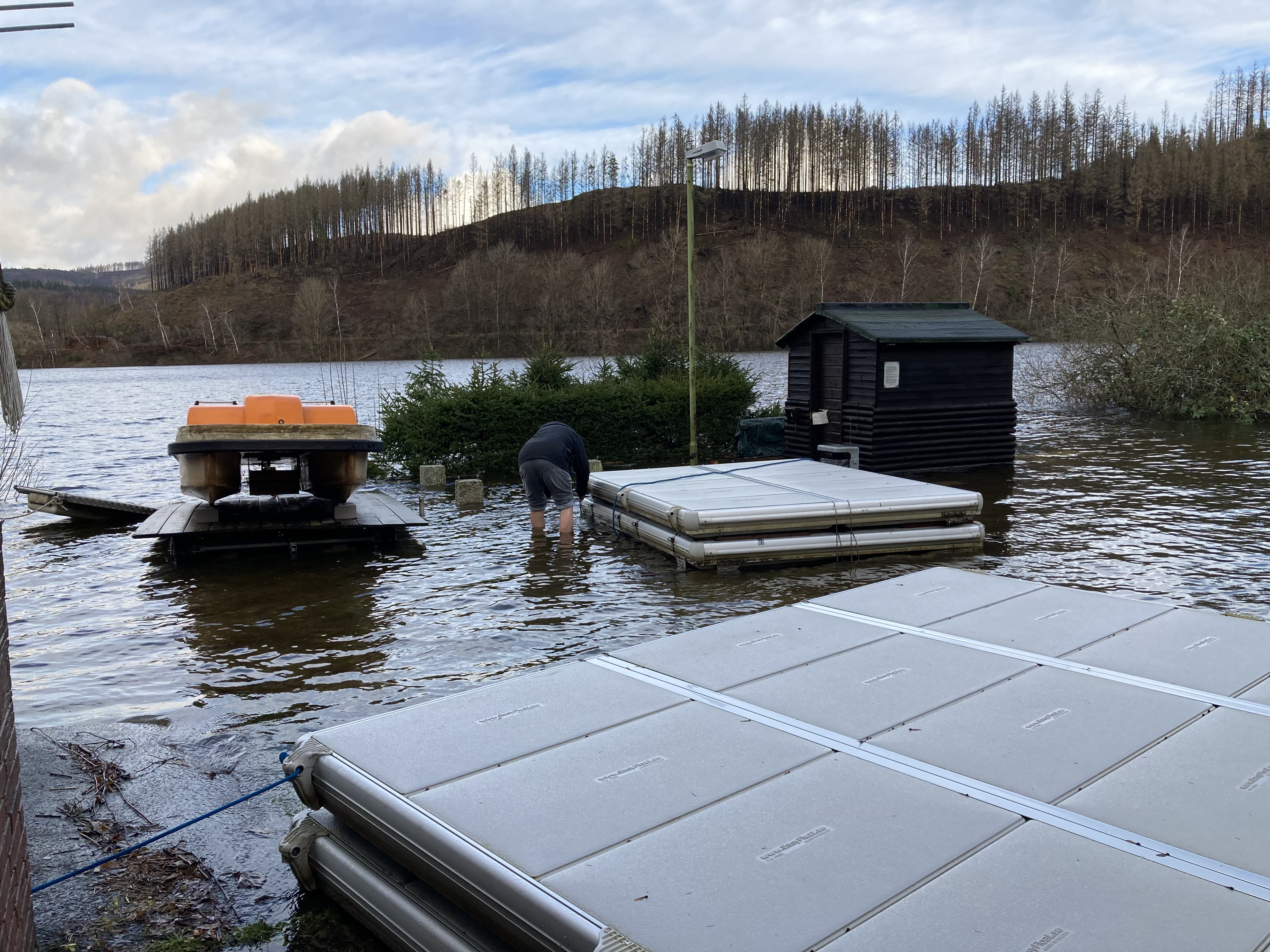 Stegelemente des Seglerstegs beginnen zu "Baden"... |