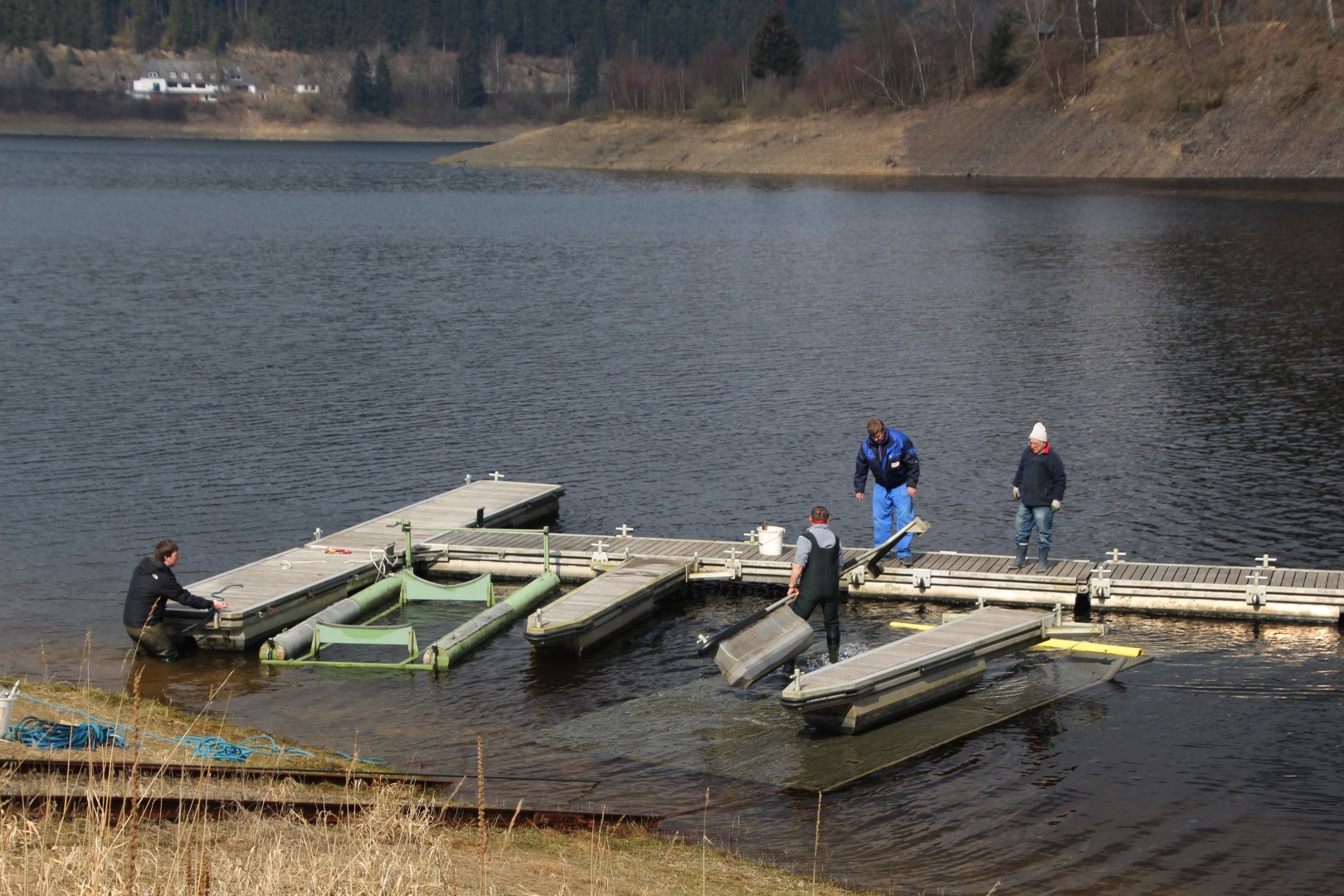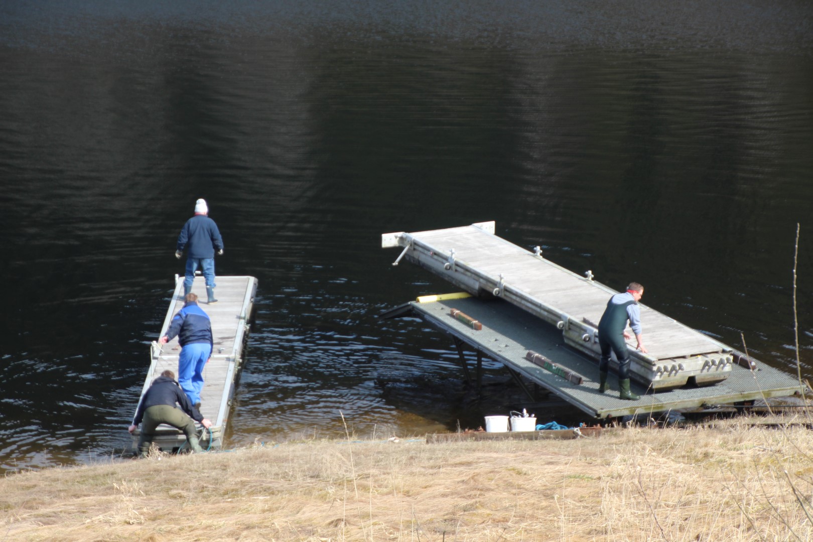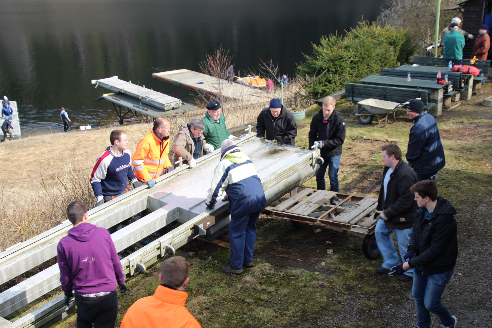Am 28. März 2015, es war ein sonniger Frühlingstag, haben wir den Ruderersteg und einen Seglersteg montiert.