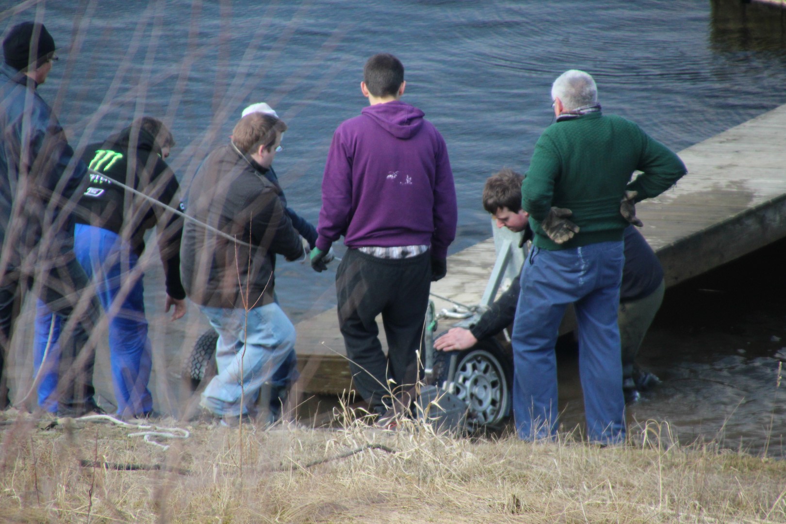 Es wird auf dem Slipwagen im Wasser zum Kopfteil geschwommen... |